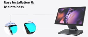 Terminalul POS este proiectat pentru a permite o instalare rapidă și simplă, reducând timpul și efortul necesar pentru punerea în funcțiune. De asemenea, întreținerea este facilitată prin acces ușor la componentele interne, ceea ce permite mentenanță și actualizări rapide, minimizând perioadele de nefuncționare și costurile asociate